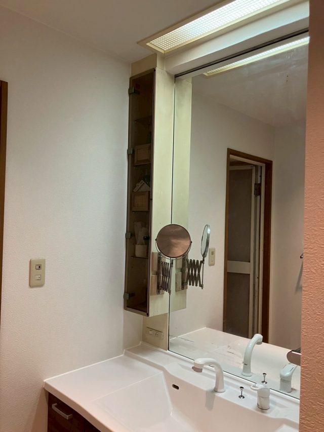 内装も新しくしたいというご要望でしたので、ご予算内にするために今ついている鏡の部分を残して下台だけ交換というご提案をさせていただきました。