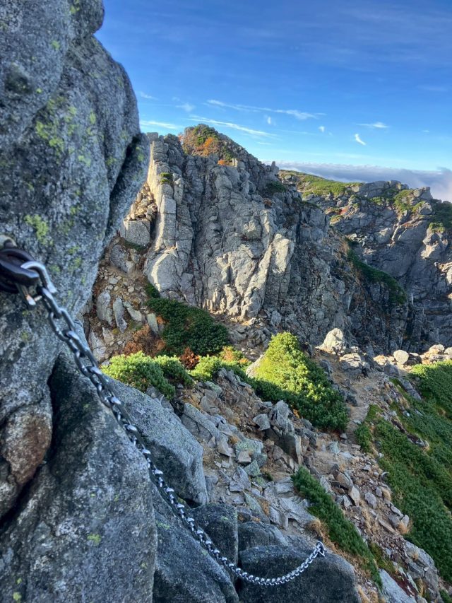 こんにちは。 先日は、中央アルプスへ黄色からオレンジ~赤へと彩る紅葉を狩りに行ってきました。 岩々しい登山道の合間に現れる華やかな色合いは、色付きのバランスが絶好調でした! ![]() 草木と岩の色合いにカモフラージュされた、絶滅危惧種で国の特別天然記念物「雷鳥」。 およそ5万年前の氷河期に、北の大陸から日本の高山地帯に移住してきたとされているようです。 近づいてもすぐには逃げないので、撮影は比較的簡単(そこに居ればの話ですが・・・) 紅葉狩りと、あわよくば雷鳥に会いに。2つ共自然が見方になってくれました。 ![]() ただ、高山にしかいないのが「雷鳥」。 天候や、状況が揃ってこそ出会いのチャンスがあります。 雷鳥とセットで、漏れなく荒っぽい岩場とそこかしこに色彩鮮やかな紅葉が。 ここは、中央アルプス「木曽駒ヶ岳」~「宝剣岳」。 鎖と岩を掴みながら、ゆっくり進み頂上へ。 ちっぽけな下界が太陽光でキラキラと輝いて見えました。 ![]() ![]() ![]() ⇑ ⇑ チロルの舌 ⇑ ⇑ 最初はちょっとゾッとしますが・・・ 体制を崩さないよう慎重に。 半畳くらいのスペースがあるので、自然の造形の上で座ってのんびり自然を満喫しました! ゆっくり休憩を済ませたら、雲海の先、「空木岳」へ向けロング縦走開始ーーー♬ |