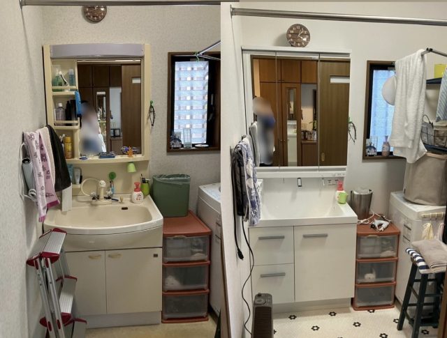 今回は洗面台交換に加え、クロス・クッションフロアの交換も行いましたので、