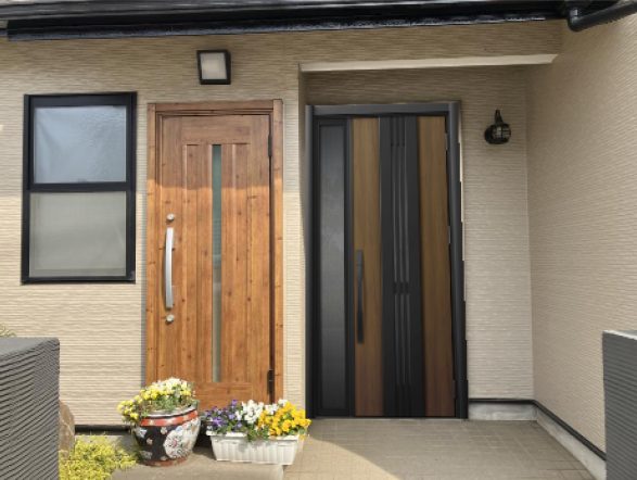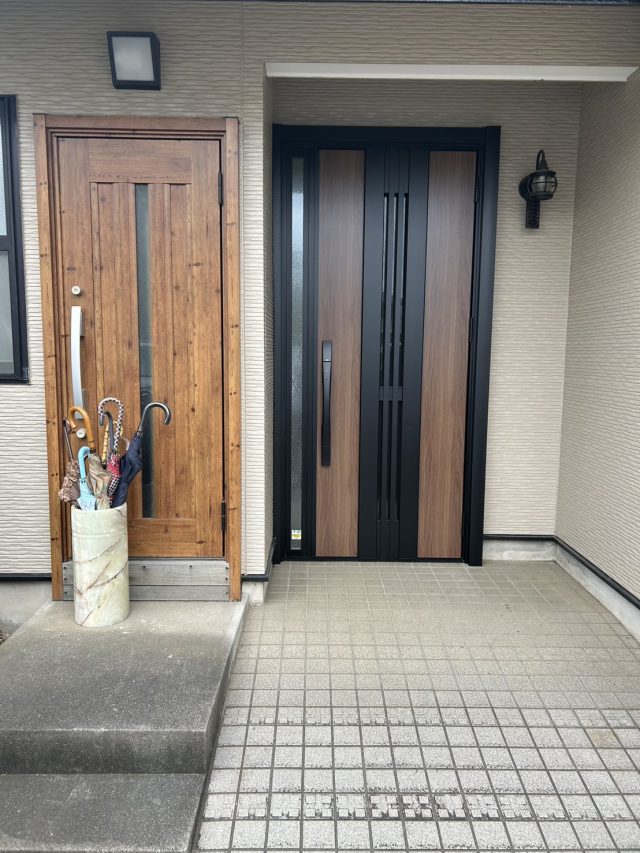 先日 実家の玄関ドアを交換しました。 既存のドアは20年前の物で決して壊れているわけではないのですが 断熱性能が悪く 開け閉めの際の取っ手がガタンガタン ちょっとうるさい・・・。 防犯のことも考えて 替えちゃおうか という事でまずは外壁に合うドアがどんなものか シュミレーションしてみました。合成写真でシュミレーションできるのでやってみると ![]() こんな感じ ちょっとへたくそで右側が既存のドアはみ出てしまっていますが イメージがつかめれば 良いのでOK!! という事でこちらのドアを採用しました。 で 出来上がりはこちら ![]() イメージ通りで問題ナシ!! しかも ファミリーロックにしたので 携帯があれば鍵がなくても携帯一つで開けられます! 鍵をなくしり 忘れたりしても携帯があれば大丈夫 設定も替えられるので安心です。 是非 ご検討下さい。 |