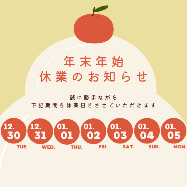 こんにちは!Handymanリフォーム吉祥寺店の佐々木です! 本日は年末年始休暇のご案内をいたします ![]() 皆様にはご不便をおかけいたしますが、 なお、休暇中にいただいたご連絡につきましては1/6(火)以降に対応させていただきます。 よろしくお願いいたします🍊 |