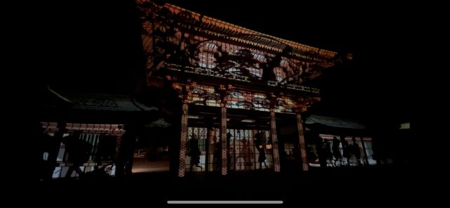 そしてお目当ての楼門マッピング こちらは専用の列に並んで、6分ほどのマッピングショーを入れ替え制で見る、といった感じでした。
