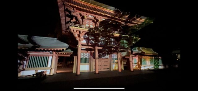 楼門のプロジェクションマッピングがメインですが、ところどころでちょっとしたライティングアレンジがされていました。