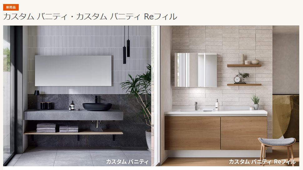 4月からの新商品情報です。 カスタムバニティに種類が増えたのですが、 今まで選択肢が少なかった間口調整できる洗面台。 特にマンション現場では、壁と壁に合わせた間口で微妙な寸法を刻んでいることが多いです。