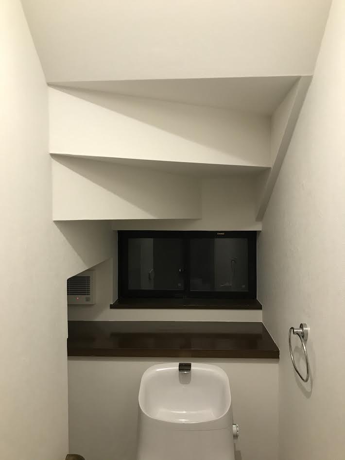 トイレ内装リフォーム(壁紙・クロス張替)<br /> <br /> トイレ交換に合わせて、壁紙クロス張替を行いました。<br /> 階段下の梁が多い所も張替致します!