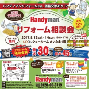 キッチン・浴室・トイレ・洗面台・窓・玄関など、実物が展示されているので見て触れて使い勝手を実感してください。 事前予約・ご質問はハンディマンまでお問い合わせください! |