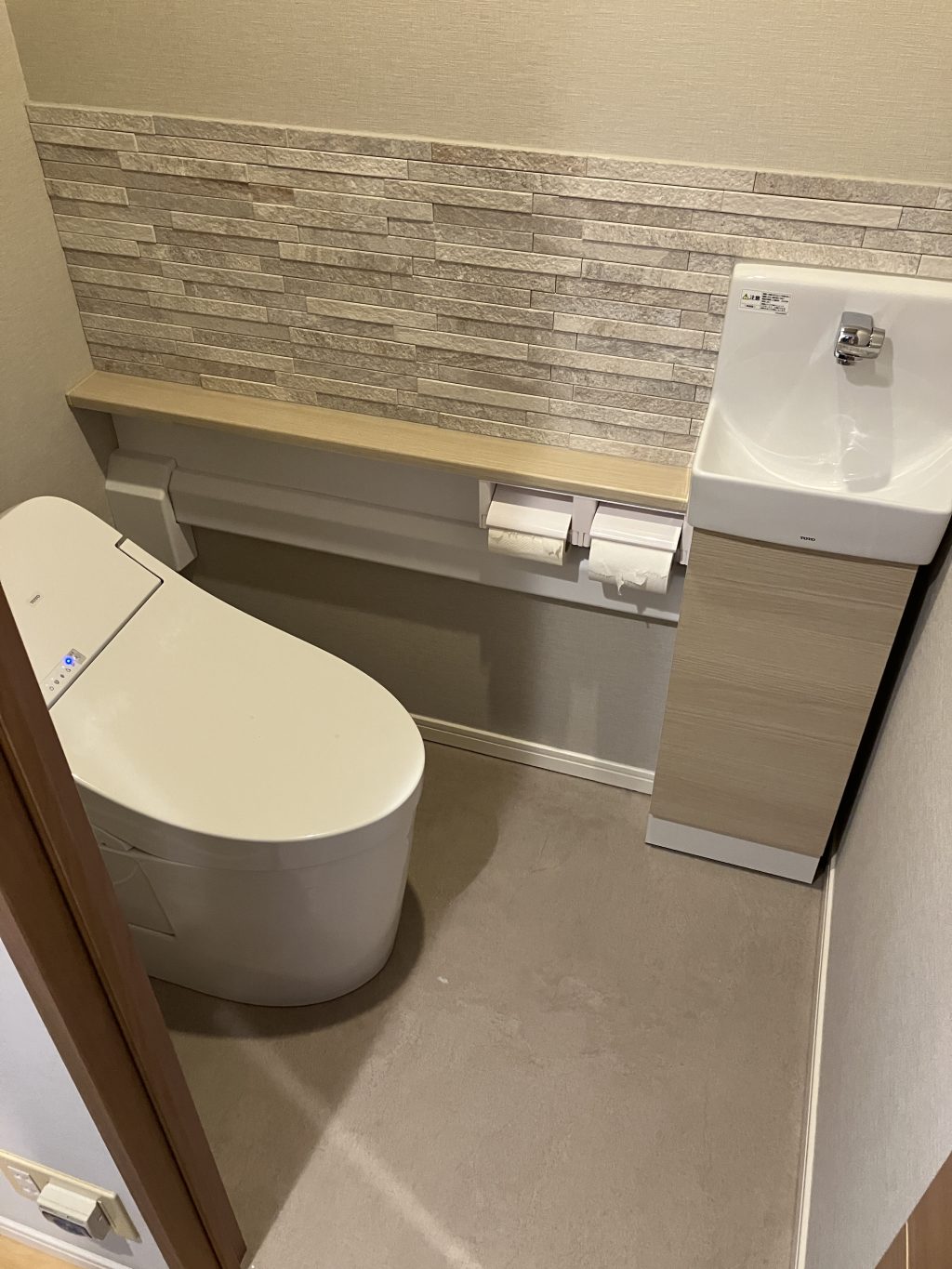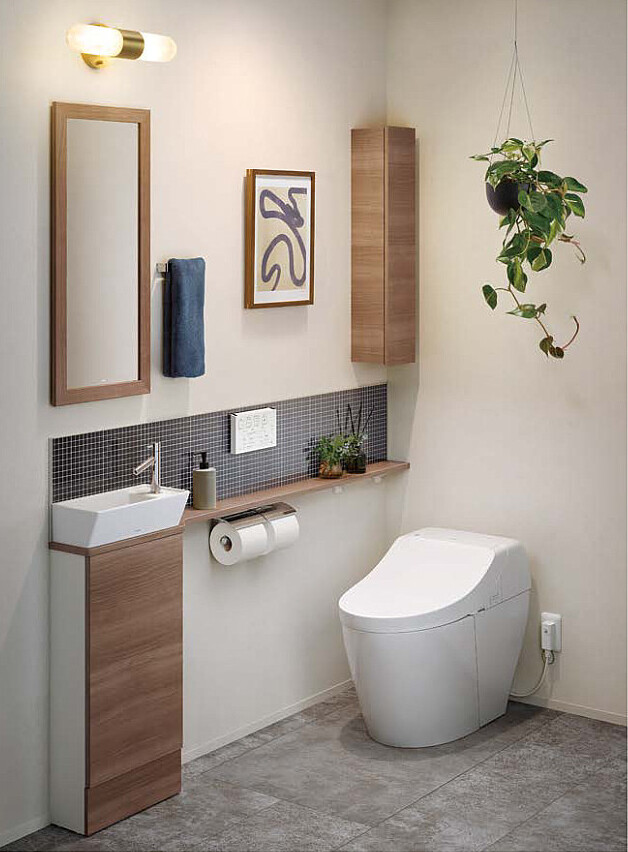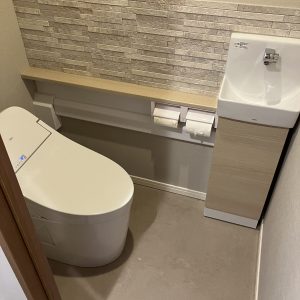 トイレにエコカラットを入れて、デザイン性と調湿・消臭効果を取り入れる提案をしました。