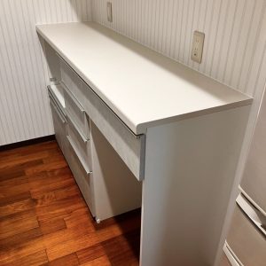 窓が無いキッチンのため、明るい印象になるよう商品を選びました。