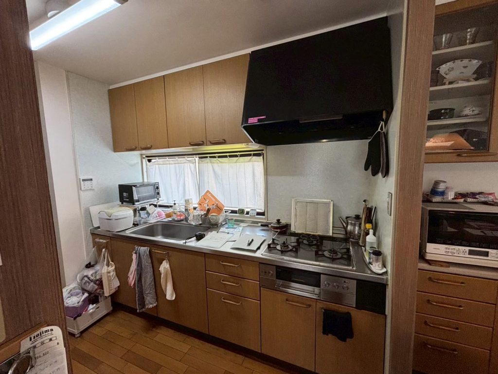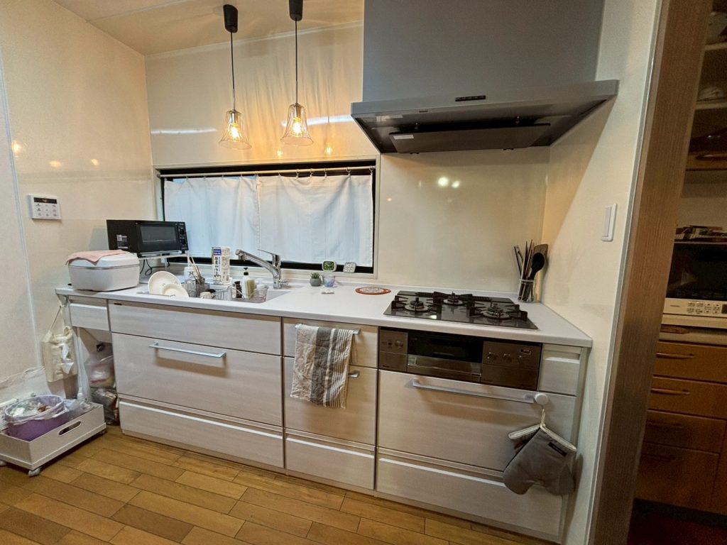 経年変化と汚れが気になってきたためリフォームをご検討された。 ◆リフォーム会社からの提案LIXIL紹介の為トイレの仕様が決まっていたのと、お客様ご自身でキッチンの仕様を大まかに決めてくださっていたので、ご要望を満たしつつご予算を抑えて提案しました。キッチンが下台のみの交換、吊戸撤去の内容だったので、おしゃれなペンダント照明の提案をしました。